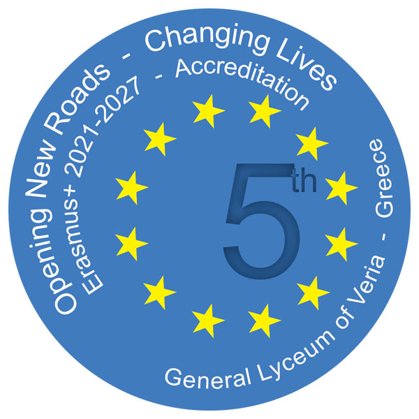 Το 5ο Γενικό Λύκειο Βέροιας, ξεκίνησε την υλοποίηση του Διαπιστευμένου Σχεδίου Μαθησιακής Κινητικότητας Ατόμων (ΚΑ1) του τομέα Σχολικής Εκπαίδευσης του Προγράμματος Erasmus+ 2021-2027με Κωδικό Πιστοποίησης: 2020-1-EL01-KA120-SCH-000094709 που αφορά: α) τη διαμόρφωση ενός συμπεριληπτικού χαρακτήρα σε αυτό, με έμφαση στην ανάπτυξη παιδαγωγικών μεθόδων για την δημιουργία κλίματος αποδοχής, αλληλεγγύης, ισότητας ευκαιριών β) τη βελτίωση δεξιοτήτων επικοινωνίας και χρήσης ξένων γλωσσών και γ) διαφοροποιημένη διδασκαλία και Μάθηση σε συνδυασμό με την χρήση των Νέων Τεχνολογιών στη διδασκαλία της Ελληνικής Γλώσσας και των υπόλοιπων μαθημάτων. Κατά το τρέχον σχολικό έτος 2022-2023 συμμετείχε με τέσσερις εκπαιδευτικούς σε επιμορφωτικά σεμινάρια, που υλοποιήθηκαν σε διάφορες ευρωπαϊκές χώρες. Οι επιμορφώσεις αυτές είναι ενταγμένες στο πλαίσιο του Ευρωπαϊκού ΠρογράμματοςErasmus+ Βασική Δράση 1 (ΚΑ1): Μαθησιακή Κινητικότητα Ατόμων με κωδικό 2022-1-EL01-KA121-SCH-000060031.