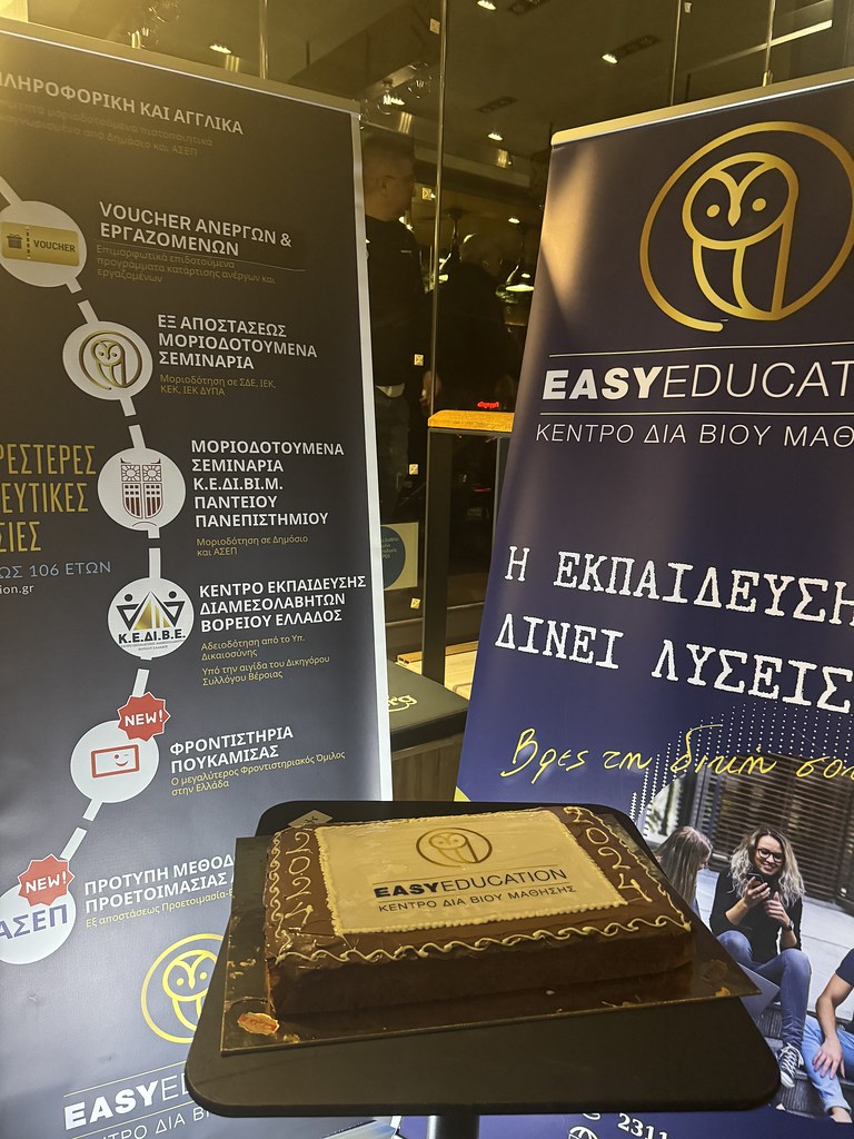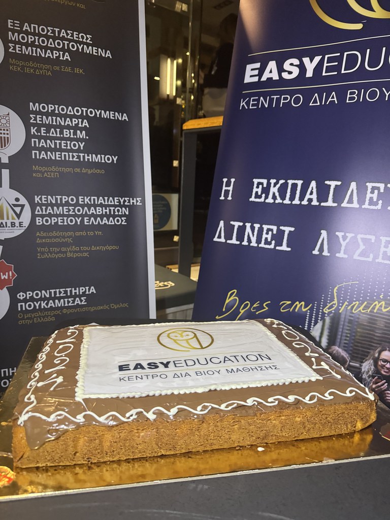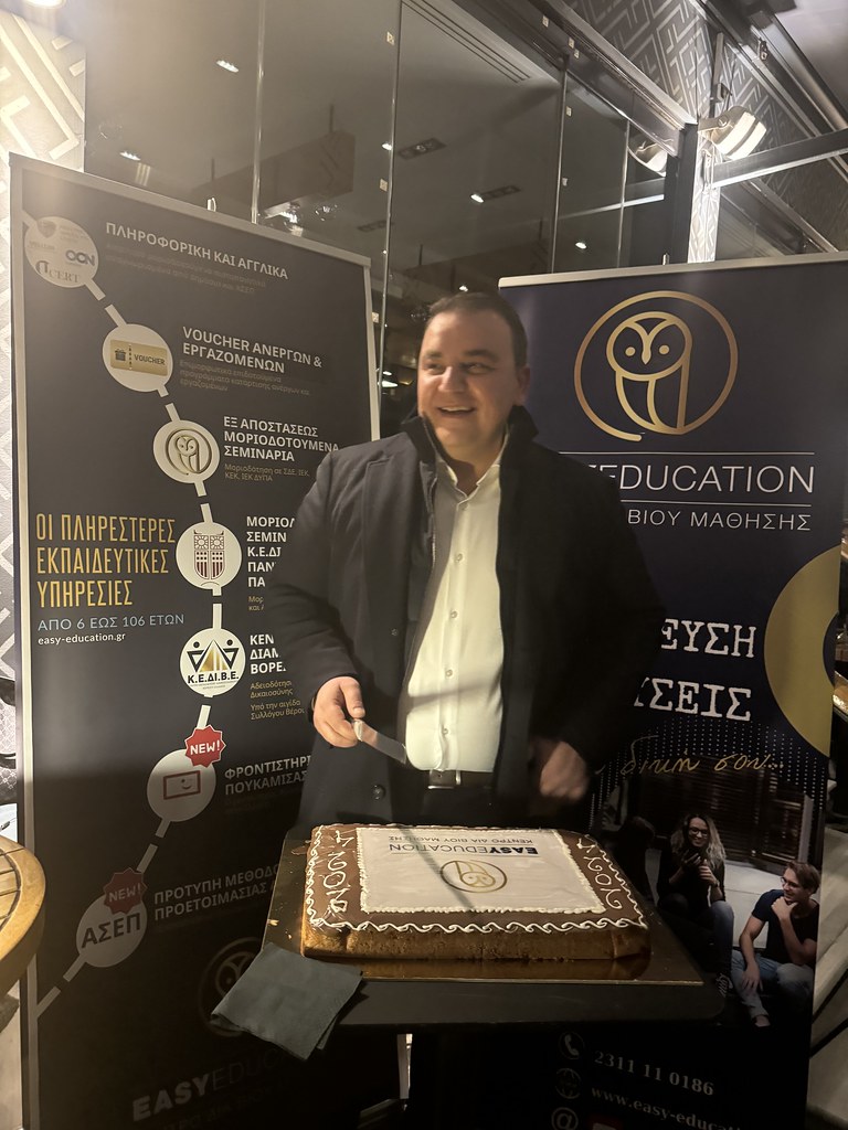 H EasyEducation K.Δ.Β.Μ πραγματοποίησε την ετήσια κοπή της πίτας, σηματοδοτώντας άλλη μια επιτυχημένη χρονιά για τον πρωτοπόρο φορέα παροχής εκπαιδευτικών υπηρεσιών. Με αναγνώριση από το Υπουργείο Παιδείας, Έρευνας & Θρησκευμάτων και πιστοποίηση από τη Γενική Γραμματεία Δια Βίου Μάθησης, η EasyEducation έχει καθιερωθεί ως ένας από τους κορυφαίους παρόχους εκπαιδευτικών υπηρεσιών στη χώρα μας.