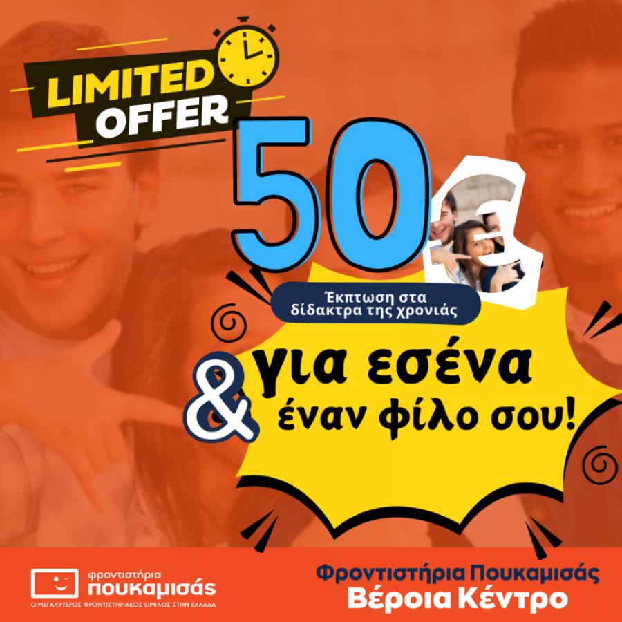 Έλα στο Φροντιστήριο Πουκαμισάς Βέροια Κέντρο μαζί με έναν φίλο σου