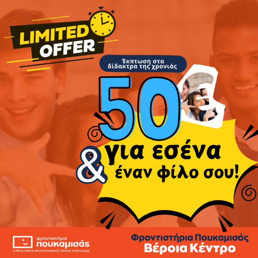 Έλα στο Φροντιστήριο Πουκαμισάς Βέροια Κέντρο μαζί με έναν φίλο σου