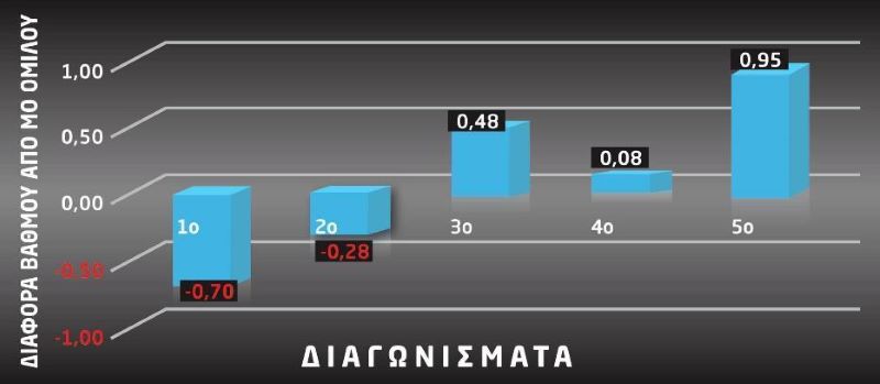 Οι μαθητές σε κάθε μάθημα παρακολουθούν την εκπαιδευτική τους πορεία, δηλαδή την εξέλιξη της διαφοράς του βαθμού τους από τον μέσο όρο του Ομίλου, με ειδικά γραφήματα. Έχουν, δηλαδή, την πραγματική εικόνα της βελτίωσής τους.