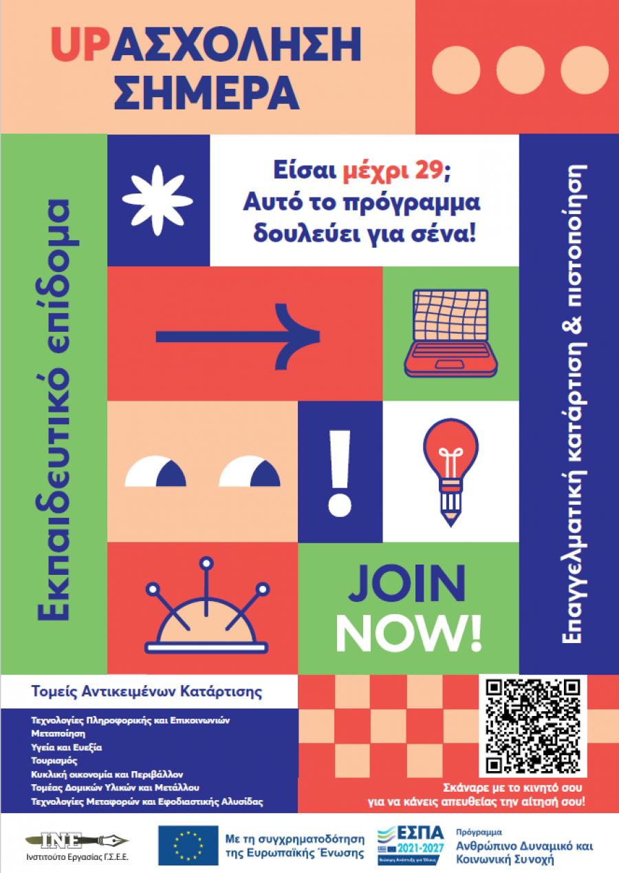 Στο πλαίσιο της Πράξης «Ολοκληρωμένη παρέμβαση για την επαγγελματική ανάπτυξη και ένταξη στην αγορά εργασίας των νέων ηλικίας έως 29 ετών» που εντάσσεται στο πρόγραμμα «Ανθρώπινο Δυναμικό και Κοινωνική Συνοχή» και αφορά 8.000 ανέργους (1445 για την Κεντρική Μακεδονία), το ΙΝ.Ε. – Γ.Σ.Ε.Ε. προσκαλεί άνεργους νέους 18 έως 29 ετών, αποφοίτους κατώτερης δευτεροβάθμιας (γυμνασίου), δευτεροβάθμιας και μεταδευτεροβάθμιας εκπαίδευσης να υποβάλουν αίτηση συμμετοχής για να λάβουν μέρος στις παρακάτω υπηρεσίες: