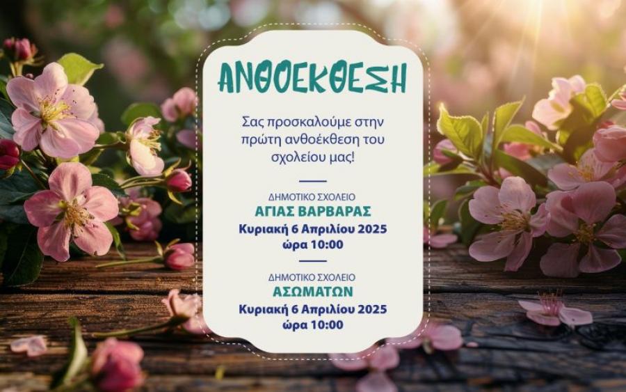 Θα χαρούμε ιδιαιτέρως να σας δούμε στην πρώτη ανθοέκθεση του σχολείου μας που θα πραγματοποιηθεί ως εξής: