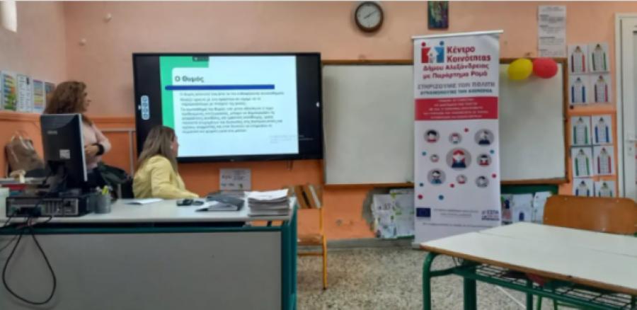 Ο Δήμος Αλεξάνδρειας μέσω του Κέντρου Κοινότητας με παράρτημα Ρομά του Τμήματος Κοινωνικής Πολιτικής και Προστασίας της Υγείας, της Διεύθυνσης Κοινωνικής Προστασίας Παιδείας και Πολιτισμού, πραγματοποίησε ενδοσχολική επιμόρφωση γονέων εκπαιδευτικών την Παρασκευή 28 Μαρτίου στο Δημοτικό Σχολείο Πλατάνου.