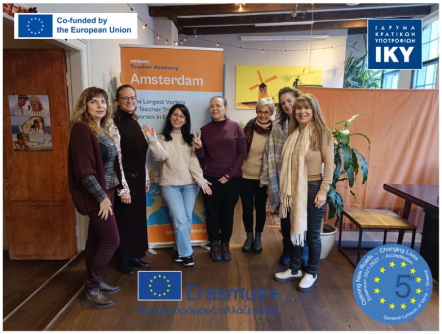 Παράλληλα, η καθηγήτρια Αγγλικών κα Γιαννάκη Έλενα συμμετείχε στο επιμορφωτικό πρόγραμμα "ChatGPT and Basic AI Tools", το οποίο πραγματοποιήθηκε στο Άμστερνταμ από τις 25 έως και τις 30 Νοεμβρίου 2024.