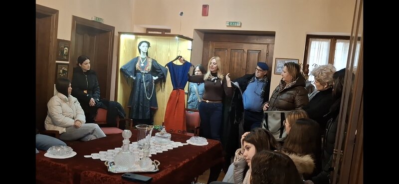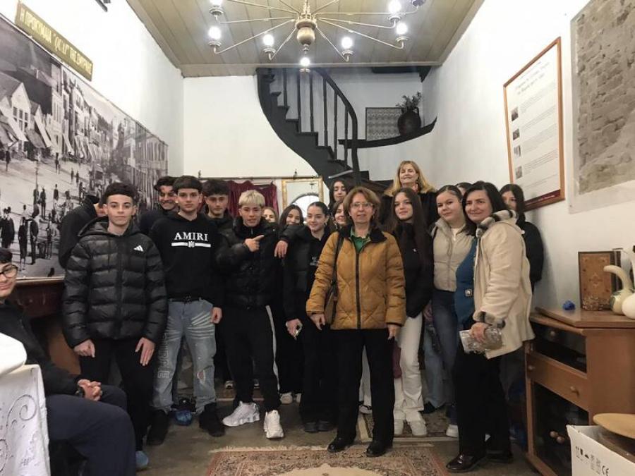 Συγκεκριμένα το τμήμα Γ1 επισκέφτηκε το Σπίτι των Βλάχων, όπου ο πρόεδρος του Συλλόγου Χρυσής Σταμάτης και ο Γκαλαΐτσης Τάκης, μέλος της Επιστημονικής Επιτροπής, ενημέρωσαν τους μαθητές για την παρουσία των Βλάχων στην πόλη μας, τη γλώσσα, τα έθιμα και τις παραδόσεις τους αλλά και τη συμβολή τους στην οικονομική και κοινωνική ανάπτυξη του τόπου. Ακολούθησε ξενάγηση από τα μέλη του Δ.Σ. Α. Αναστασίου και Α. Πίσκου, παρουσίαση των βλάχικων φορεσιών και χαρακτηριστικών βλάχικων χορών και τραγουδιών.