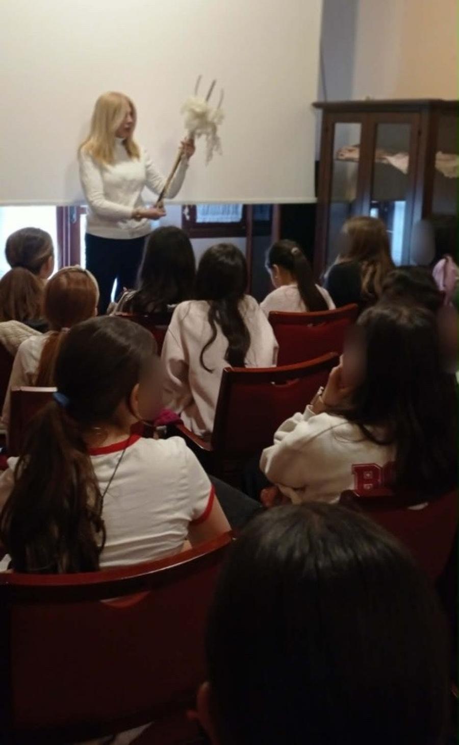 Κατά την επίσκεψή τους, οι μαθητές και οι μαθήτριες του Τμήματος είχαν την ευκαιρία να γνωρίσουν από κοντά τα παραδοσιακά υφαντά και να ενημερωθούν για τις τεχνικές μεθόδους επεξεργασίας του μαλλιού και τις διαδικασίες που ακολουθούνταν στο παρελθόν από τις γυναίκες και ειδικότερα από τις ξακουστές Βλάχες υφάντρες. Έτσι οι μαθητές και οι μαθήτριες, μέσα από την ξενάγηση, ήρθαν σε επαφή με την πολιτιστική κληρονομιά και την αξία της χειροποίητης δημιουργίας.