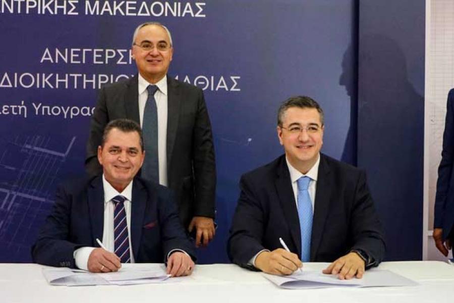 Προχωρήσαμε στην σύναψη προγραμματικής σύμβασης με τη Σχολή Μετεκπαίδευσης Επιμόρφωσης Ελληνικής Αστυνομίας Βόρειας Ελλάδος ύψους 692.503,64 ευρώ για την μελέτη και έκδοση Οικοδομικής Αδείας ανέγερσης κτιρίου κοιτώνων 2.800μ2 με σκοπό την ένταξη στο ΕΣΠΑ της Κεντρικής Μακεδονίας. Δύο πολύ σημαντικά έργα που χρηματοδοτούνται από την Περιφέρεια Κεντρικής Μακεδονίας.