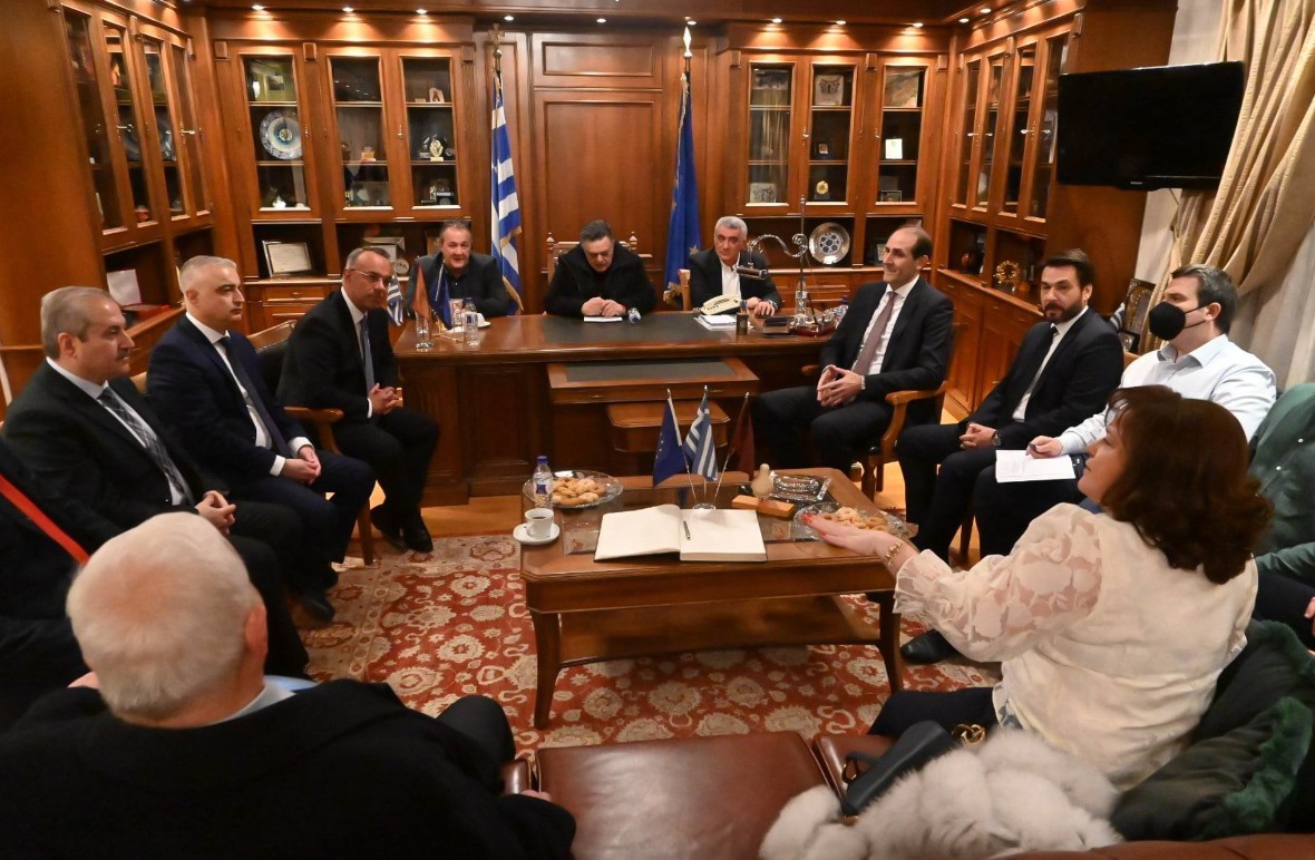 Κατά την επίσκεψη του ο Υπουργός Οικονομικών είχε συνάντηση με τον Σεβασμιότατο Μητροπολίτη Βεροίας Ναούσης και Καμπανίας κ. Παντελεήμων, ενώ παρευρέθηκε σε συσκέψεις, στο Επιμελητήριο Ημαθίας με τον Πρόεδρο κ. Γιώργο Μπίκα, τους αντιπροέδρους κ.κ. Στέφανο Αποστολίδη, Τάσο Γιάγκογλου , τους προέδρους των Εμπορικών Συλλόγων της Ημαθίας κ. Αθηνά Πλιάτσικα - Τσιπουρίδου, κ. Άγγελο Κάλλη, κ. Γιώργο Δημητριάδη και στην Αντιπεριφέρεια Ημαθίας με τον Αντιπεριφερειάρχη κ. Κώστα Καλαϊτζίδη, τους δημάρχους Κώστα Βοργατζίδη, Νικόλα Καρανικόλα , Παναγιώτη Γκυρίνη, και τον Πρόεδρο του Ι.Σ.Η Μάκη Ισαακίδη.