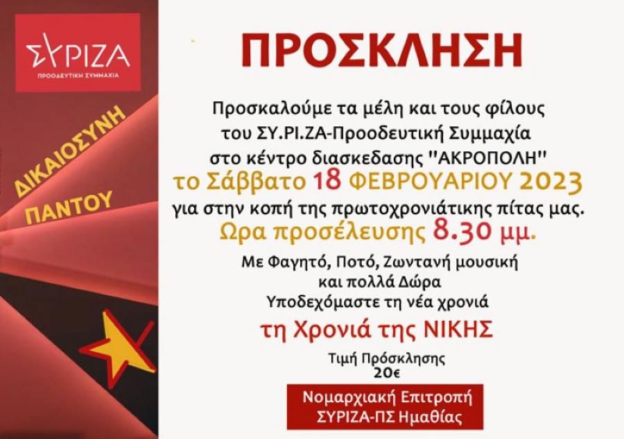 Ο ΣΥΡΙΖΑ Ημαθίας κόβει την πίτα του