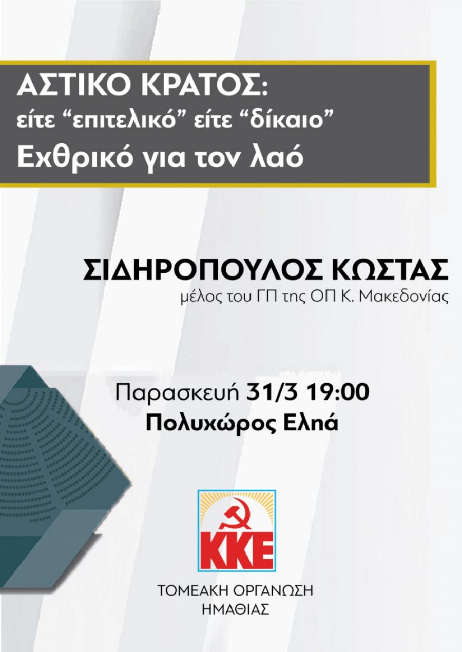Πολιτική εκδήλωση του ΚΚΕ την Παρασκευή στη Βέροια