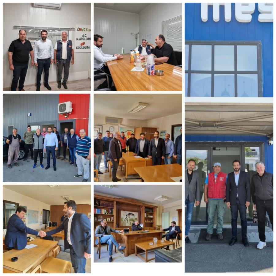 Τους Αγροτικούς Συνεταιρισμούς Μελίκης, Μέσης, Α.Σ. Κουλούρας, «Εύφορος Γη» και «Απόλλων» Κουλούρας επισκέφτηκε ο υποψήφιος Βουλευτής, Τάσος Μπαρτζώκας, καταγράφοντας τα ζητήματα που απασχολούν τα συνεταιριστικά σχήματα και συνδιαμορφώνοντας τις προτάσεις, που θα τεθούν στην πολιτική ηγεσία, κατόπιν της ανανέωσης της θητείας του.