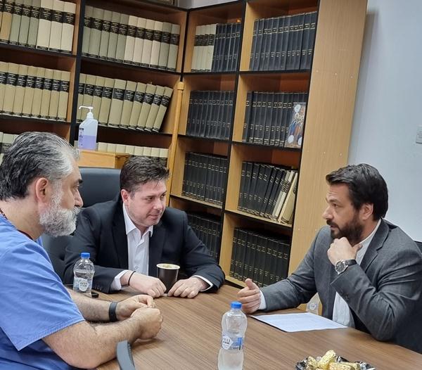 Ο υποψήφιος Βουλευτής είχε ένα εκτεταμένο διάλογο με τον Αναπληρωτή Διοικητή, δρ. Κων. Λυκοστράτη, καθώς και με διευθυντικά στελέχη των διάφορων Υπηρεσιών της μονάδας, αλλά και το Σωματείο Εργαζομένων, προκειμένου να αποτυπώσει, από όλες τις οπτικές, τα θέματα που απασχολούν συνολικά.