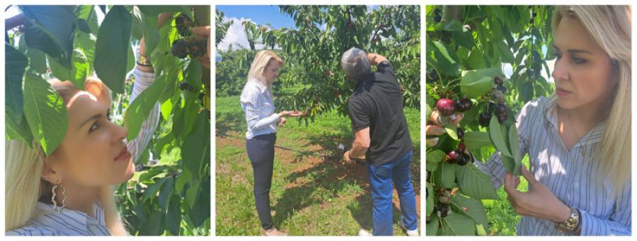 Η υποψήφια βουλευτής της Νέας Δημοκρατίας Λίνα Τουπεκτσή επισκέφθηκε την περιοχή της Νάουσας και διαπίστωσε τις ζημίες που έφερε η κακοκαιρία Genesis στην παραγωγή των κερασιών.