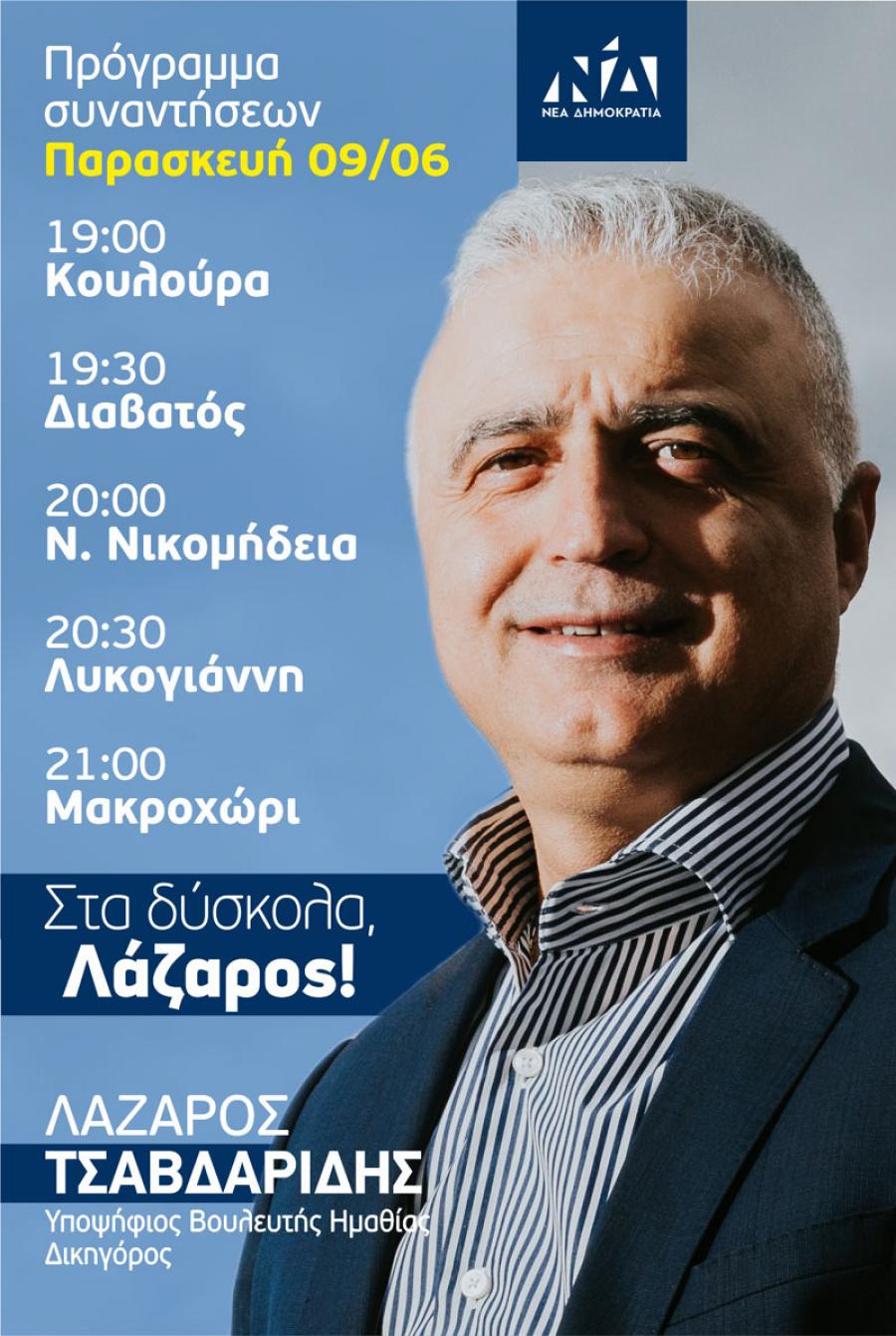 Οι προεκλογικές συναντήσεις του Λάζαρου Τσαβδαρίδη την Παρασκευή