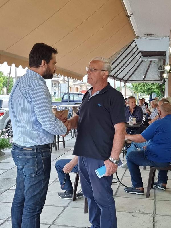 Στο Βρυσάκι, το Καμποχώρι, την Επισκοπή, τα Καβάσιλα και το Σταυρό, συνομιλώντας με αρκετούς συμπολίτες του κατά κύριο επάγγελμα αγρότες, αναφέρθηκε στο πρόγραμμα της Νέας Δημοκρατίας για μια Ελλάδα ακόμα πιο παραγωγική.