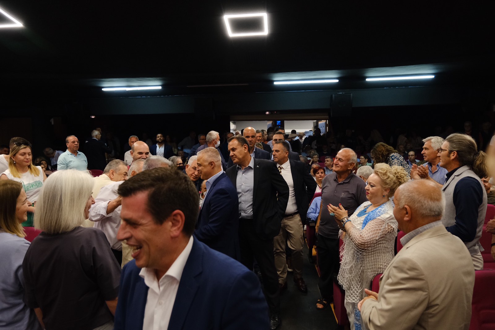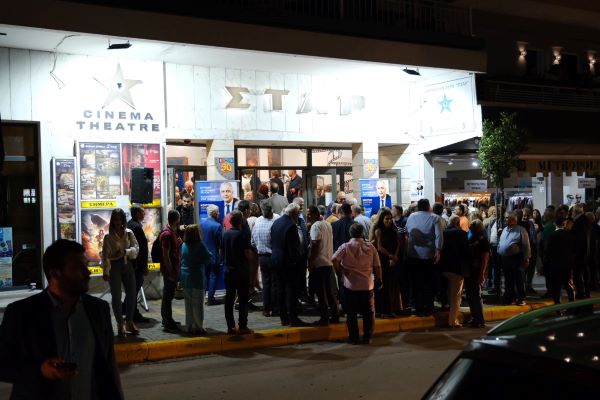 Υπογράμμισε στην ομιλία του ότι η κατάμεστη αίθουσα του κινηματογράφου ΣΤΑΡ αποδεικνύει ότι οι Ημαθιώτες δεν εφησυχάζουν αλλά συνεχίζουν με αμείωτη ένταση να αγωνίζονται για να βαφτεί ξανά όλη η Ελλάδα μπλε.