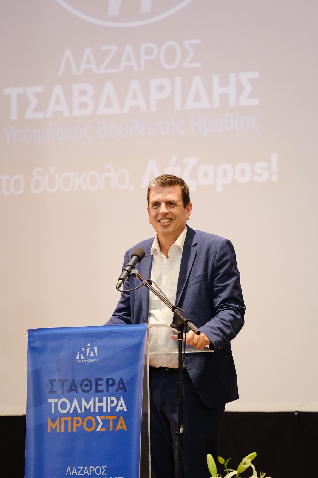 Η κεντρική προεκλογική ομιλία ενόψει των εκλογών της 25ης Ιουνίου 2023, του υποψηφίου βουλευτή Ημαθίας με τη Νέα Δημοκρατία Λάζαρου Τσαβδαρίδη έγινε το βράδυ της Κυριακής στη Βέροια.
