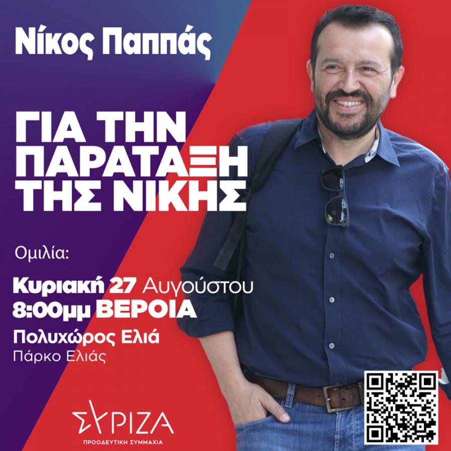 Ανοικτή πολιτική εκδήλωση του Νίκου Παππά την Κυριακή στη Βέροια