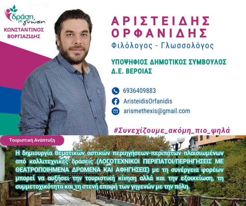 μετά από μια μακρόχρονη περιόδευση, γόνιμη και έμπλεα εμπειριών και γνώσεων στο εξωτερικό και στην Ελλάδα σε θέσεις ευθύνης και προσφοράς στα πεδία της παιδείας, του ακαδημαϊκού και επαγγελματικού στίβου, της κοινωνικής συμμετοχής, του πολιτισμού και του τουρισμού, θέτω υποψηφιότητα για το τιμητικό αξίωμα του δημοτικού συμβούλου.
