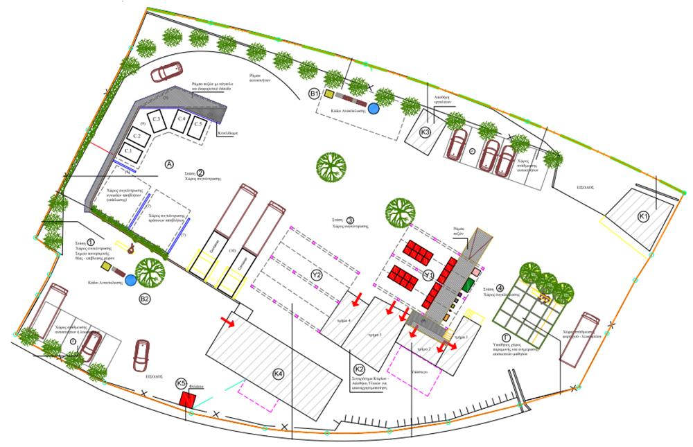 · Δημιουργία Κέντρου Συλλογής - Αποθήκευσης – Προετοιμασίας για Διάθεση Ανακυκλώσιμων Αποβλήτων, συμπεριλαμβανομένων και των Αποβλήτων Εκσκαφών Κατασκευών και Κατεδαφίσεων (Α.Ε.Κ.Κ.), υπολειμμάτων ξύλου και Χρησιμοποιημένων ελαστικών οχημάτων