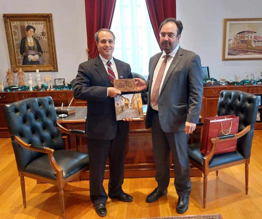 Ο Πρόξενος των ΗΠΑ στη Θεσσαλονίκη έγινε δεκτός από τον Δήμαρχο Βέροιας, στο πλαίσιο εξοικείωσης του ίδιου με την περιοχή που καλύπτει το Γενικό Προξενείο, μετά την ανάληψη των νέων του καθηκόντων στα τέλη Αυγούστου.