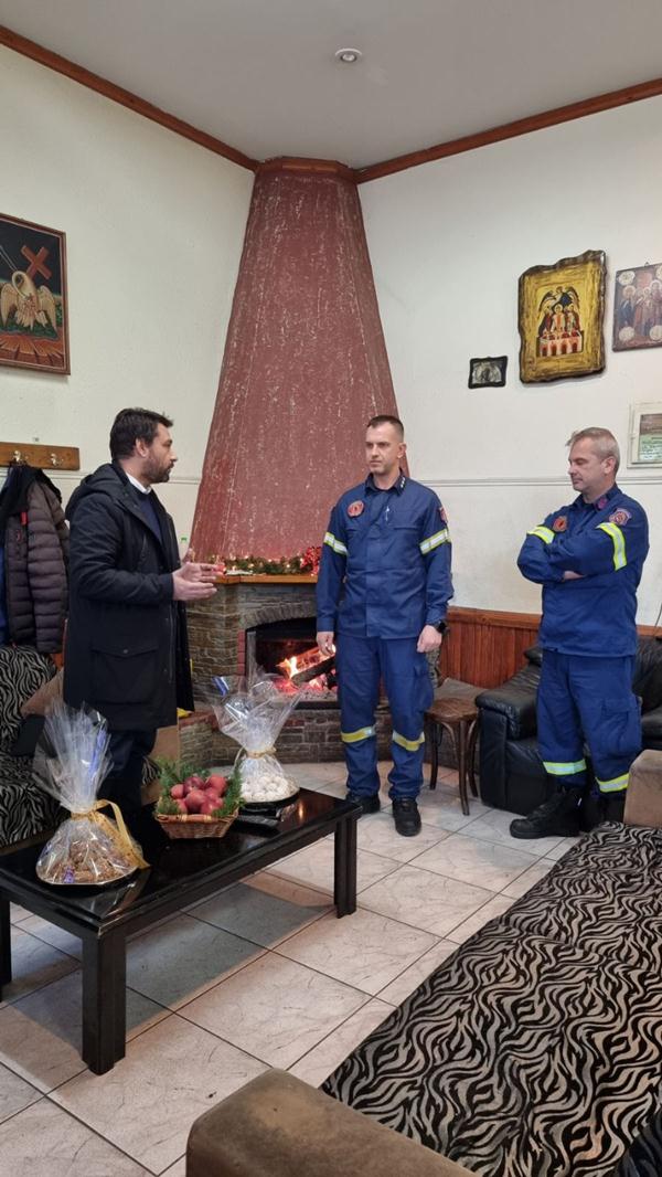 Στη σημερινή επίσκεψή του στην Ηρωική Πόλη Νάουσας, ο Τάσος Μπαρτζώκας συνάντησε τους Διοικητές του Αστυνομικού Τμήματος και Τμήματος Ασφαλείας Νάουσας και τους υπηρετούντες Αστυνομικούς, ενώ ακολούθως τους πυροσβέστες και τον Αναπληρωτή Διοικητή της Πυροσβεστικής Υπηρεσίας. Στις επισκέψεις του αυτές, είχε την ευκαιρία να δώσει σε όλους τους ένστολους και τις οικογένειές τους τις θερμές ευχές του για χαρούμενες γιορτές Χριστουγέννων και Πρωτοχρονιάς!