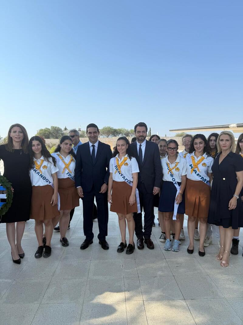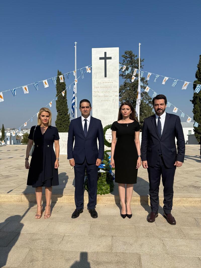 Το απόγευμα, της ίδιας μέρας στη δέηση και το τρισάγιο για τους αγνοουμένους στο Πανόραμα Αγνοουμένων στα Πυργά, ενώπιον του Προέδρου της Κυπριακής Δημοκρατίας, κ. Νίκου Χριστοδουλίδη, και της Προέδρου της Βουλής των Αντιπροσώπων, κας Αννίτας Δημητρίου, απευθύνοντας έναν ιδιαίτερα συγκινητικό χαιρετισμό, εξέφρασε την αμέριστη συμπαράσταση της Ελλάδας προς τις οικογένειες των αγνοουμένων και των πεσόντων, χαρακτηρίζοντας την υπόθεση των αγνοουμένων ως «μια ανοιχτή πληγή για τον Ελληνισμό». Υπογράμμισε τη σταθερή προσήλωση της Χώρας μας σε μια λύση στη βάση της διζωνικής, δικοινοτικής ομοσπονδίας, σύμφωνα με τα ψηφίσματα των Ηνωμένων Εθνών, και επανέλαβε ότι η Ελλάδα παραμένει ειλικρινής σύμμαχος και αφοσιωμένος συνοδοιπόρος του Κυπριακού Ελληνισμού. «Η αναζήτηση της αλήθειας για κάθε αγνοούμενο παραμένει εθνικό και ηθικό μας καθήκον. Οι αγνοούμενοι δεν είναι αριθμοί, ούτε σκιές του παρελθόντος – είναι άνθρωποι με ιστορίες, οικογένειες και όνειρα», δήλωσε χαρακτηριστικά, τονίζοντας ότι «η Κύπρος δεν ξεχνά, η Ελλάδα δεν ξεχνά και η Ιστορία δεν ξεχνά».