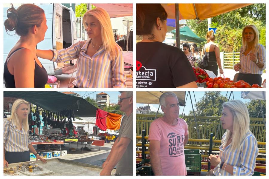 Tην λαϊκή αγορά της Βεροιας επισκέφθηκε η πολιτευτρια Λινα Τουπεκτση σήμερα Τρίτη 9 Σεπτεμβρίου.