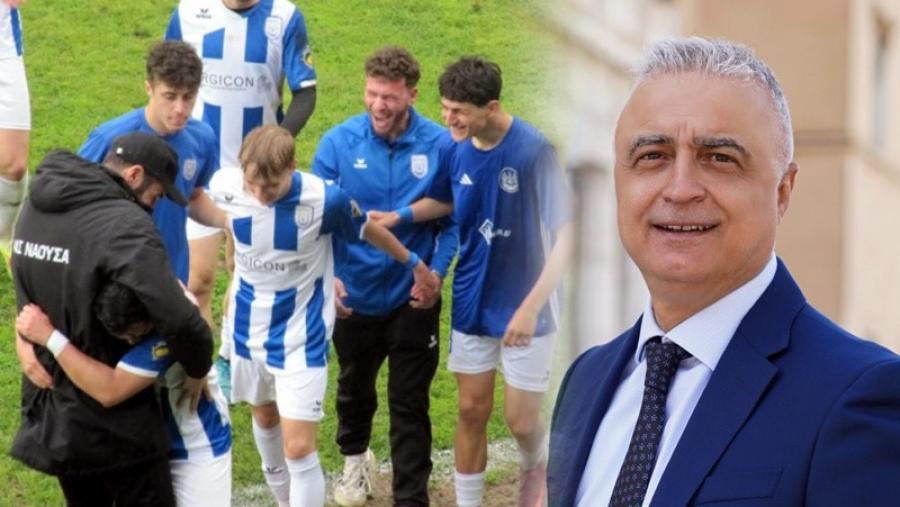 Εκφράζω τα συγχαρητήριά μου στη διοίκηση, στο τεχνικό επιτελείο, στους ποδοσφαιριστές αλλά και στους φιλάθλους της Νάουσας για την κατάκτηση του Κυπέλλου της ΕΠΣ Ημαθίας.