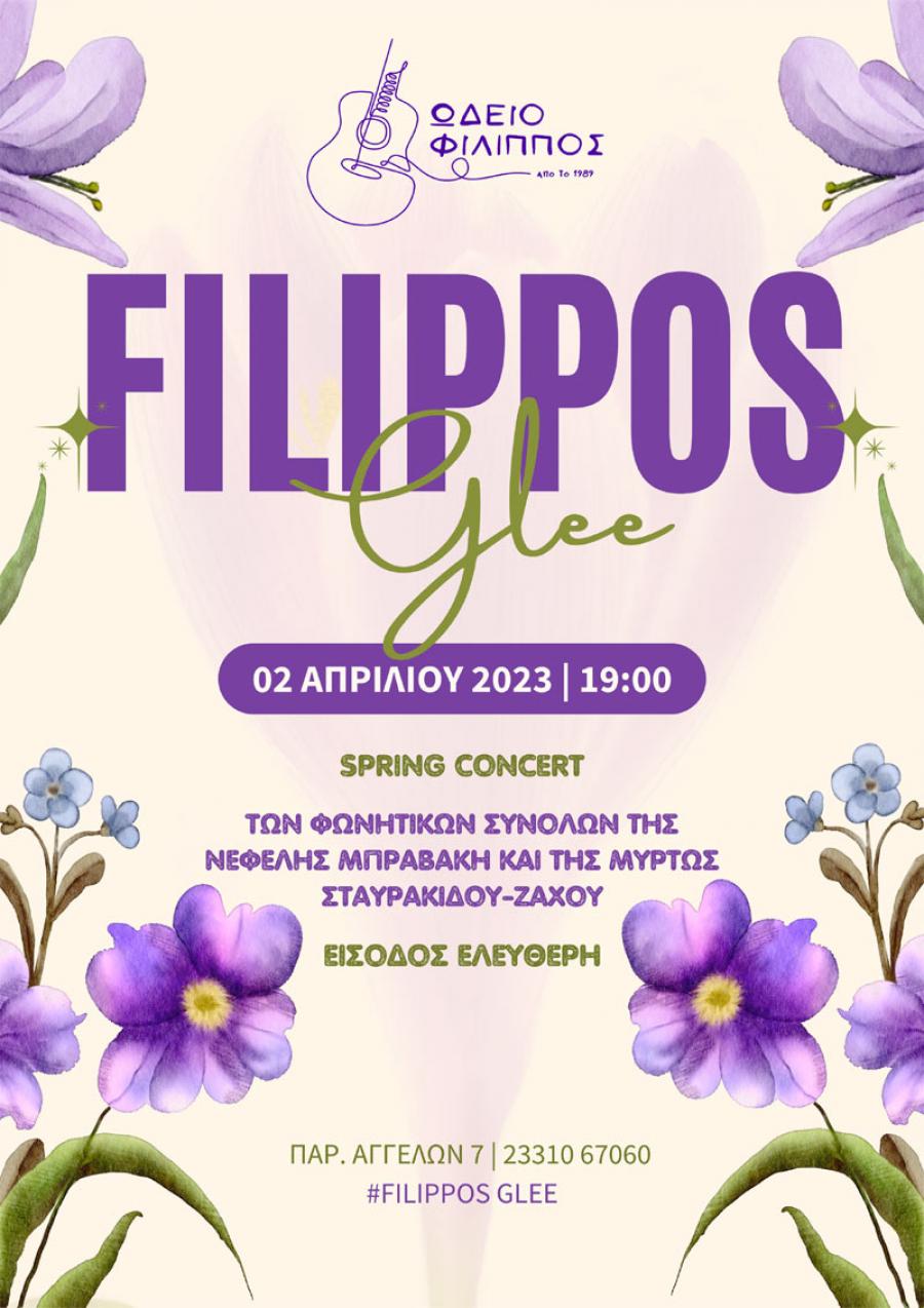 Το ανοιξιάτικο πρόγραμμα εκδηλώσεων του Ωδείου Φίλιππος Βέροιας ξεκινάει την Κυριακή 2 Απριλίου με μία συναυλία κλασικών ποπ κομματιών από τη σύγχρονη πολυφωνική ομάδα Filippos Glee.