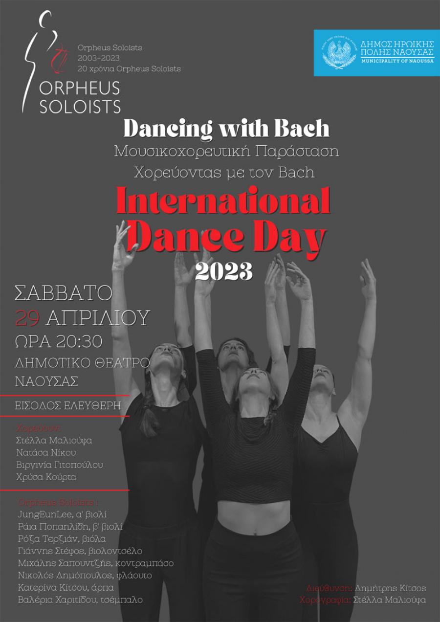 Ο Δήμος Νάουσας στο πλαίσιο της Παγκόσμιας Ημέρας Χορού διοργανώνει σε συνεργασία με το Δ.Ω.Ν. «ΕΣΤΙΑ ΜΟΥΣΩΝ», το Σάββατο 29 Απριλίου και ώρα 20:30 στο Δημοτικό Θέατρο «Μίκης Θεοδωράκης» την μουσικοχορευτική παράσταση «Χορεύοντας με τον Μπαχ».