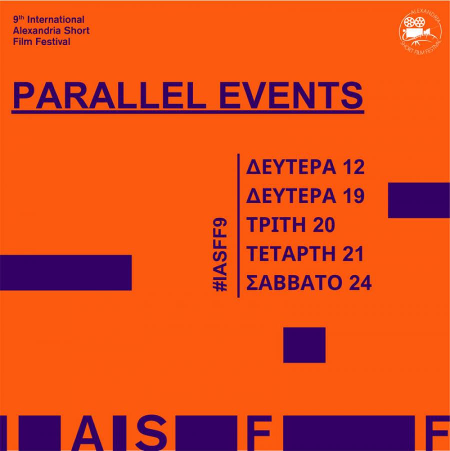 Το Διεθνές Φεστιβάλ Ταινιών Μικρού Μήκους Αλεξάνδρειας (IASFF 9), το οποίο διεξάγεται για ένατη συνεχή χρονιά, από 19 έως 24 Ιουν 2023, στην Αλεξάνδρεια Ημαθίας, σας προσκαλεί στις Παράλληλες δράσεις του φετινού προγράμματος, όπως ακολουθούν με ημερολογιακή σειρά: