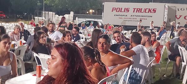 Μια υπέροχη, όπως αναμένονταν, βραδιά πέρασαν όσοι βρέθηκαν χθες Τετάρτη στο γήπεδο της Πατρίδας. Ο Νίκος Ζωιδάκης με τις ξεχωριστές ερμηνείες του και το χορευτικό του Συλλόγου Κρητικών Ημαθίας, παρέσυραν τους παρευρισκόμενους σε χορό, κέφι και διασκέδαση. Αξιοσημείωτη, ιδιαίτερα στη νεολαία, ήταν και η παρουσία του Χρήστου Καρατζάκου με τα pop και λαϊκά τραγούδια του δίνοντας έναν ζωντανό ρυθμό.