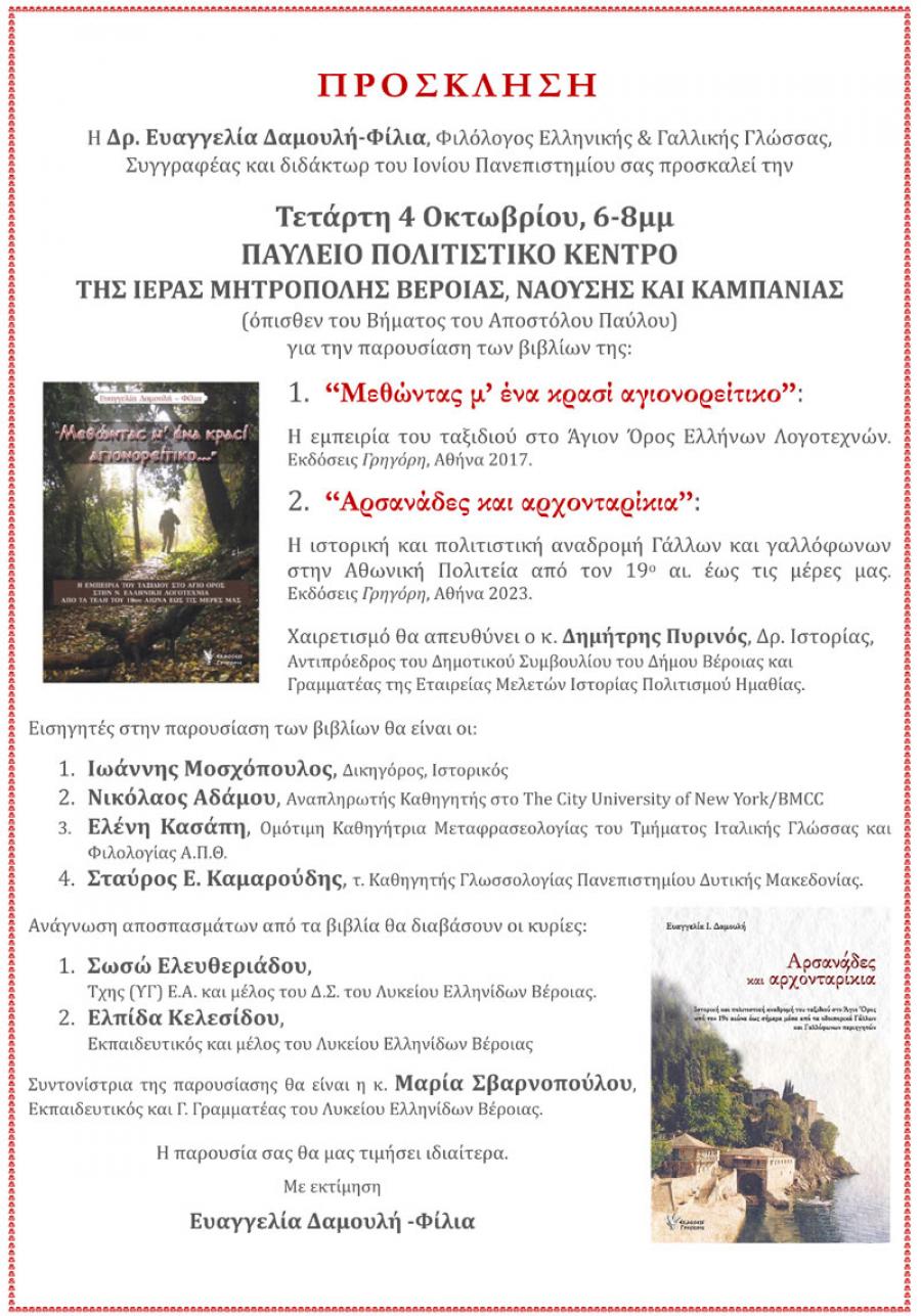 Παρουσίαση των βιβλίων για τα αρχονταρίκια, τους αρσανάδες και το κρασί του Αγίου Όρους