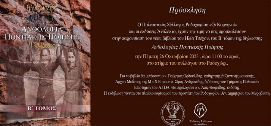 Οι "Κομνηνοί" Ροδοχωρίου παρουσιάζουν το βιβλίο "Ανθολογία Ποντιακής Ποίησης" του Ηλία Τσέχου