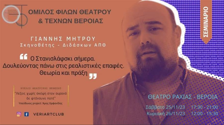 Ο Όμιλος Φίλων Θεάτρου και Τεχνών Βέροιας μεριμνά πάντα για τα μέλη του και το φιλότεχνο κοινό, διοργανώνοντας ενδιαφέροντα σεμινάρια στο πλαίσιο του κύκλου θεατρικής μέθεξης «Λέξεις χωρίς σκέψη στον ουρανό δε φτάνουνε ποτέ».