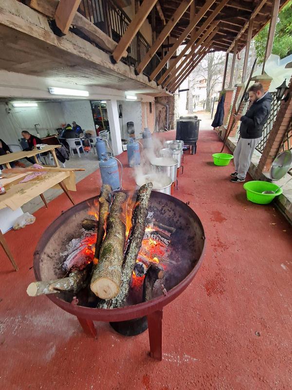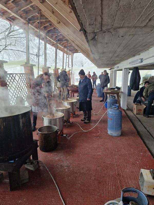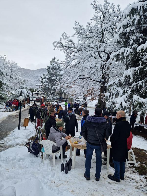 Οι συμμετέχοντες απόλαυσαν καζάνια με πεντανόστιμο στιφάδο και κ σούπα κοτόπουλου, όπως και κρασί και τσίπουρο που ετοίμασαν και πρόσφεραν τα μέλη της Κουρμπανικής Επιτροπής.