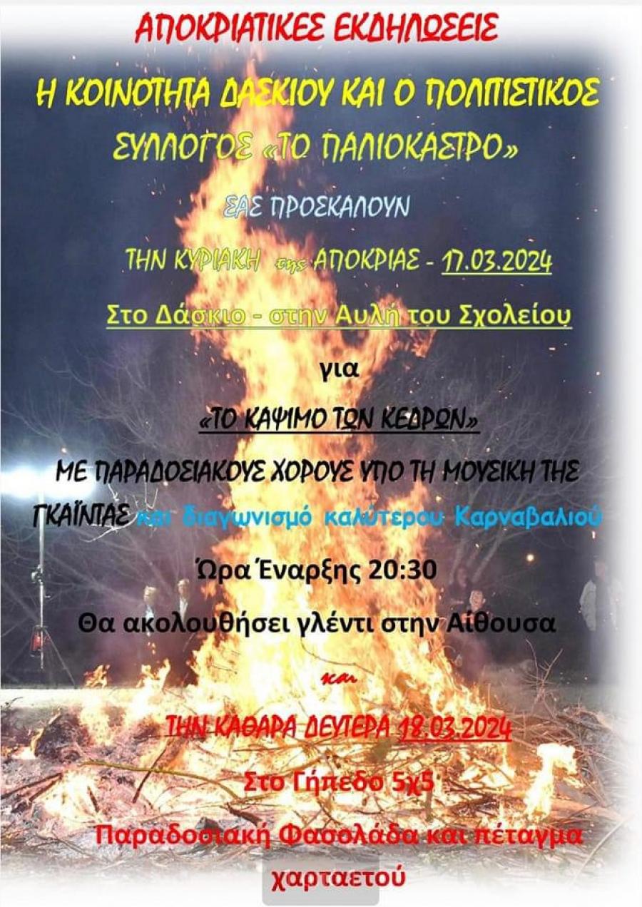 Σας περιμένουμε όλους στην αυλή του σχολείου να γλεντησουμε παρέα, τραγουδώντας γύρω από τη φωτιά αποκριάτικα τραγούδια!!