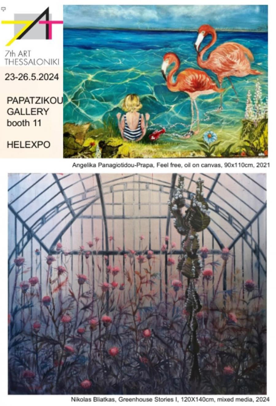 Η γκαλερί ΠΑΠΑΤΖΙΚΟΥ στην 7η Art-Thessaloniki παρουσιάζει έργα των καλλιτεχνών Νικόλα Μπλιάτκα και Αγγέλικας Παναγιωτίδου Πράπα. Εργασίες με διαφορετική γραφή αλλά με κοινό άξονα την έννοια της ανθρώπινης ελευθερίας και του «ευ ζην» σε φαινομενικά ιδανικά περιβάλλοντα.