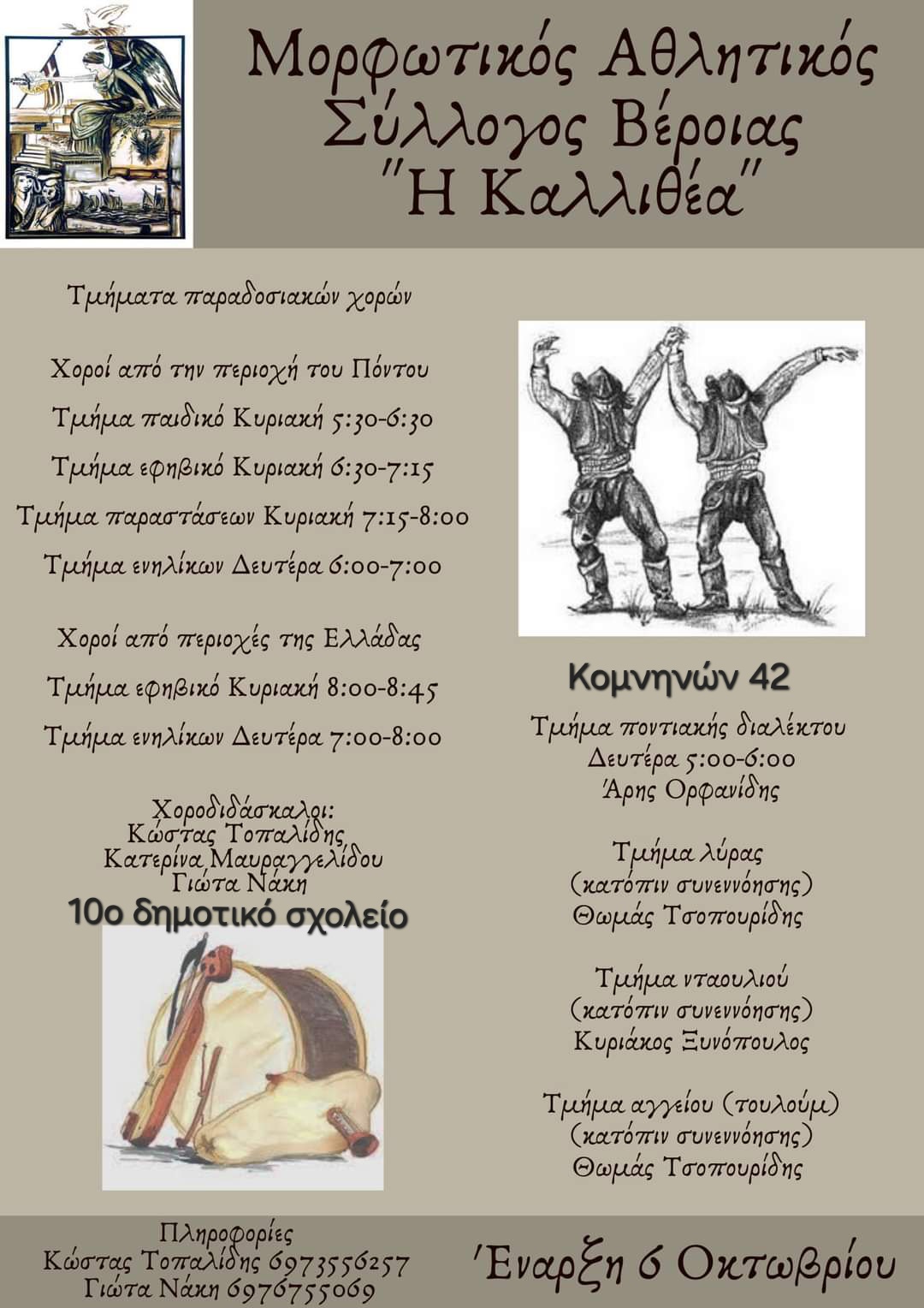 Ξεκινούν τα μαθήματα στα τμήματα του Μορφωτικού Συλλόγου Βέροια "Η Καλλιθέα"
