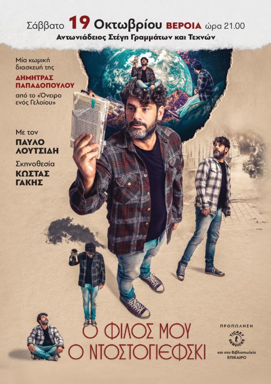 Το ΔΗΠΕΘΕ Βέροιας και η ΚΕΠΑ Δ. Βέροιας φιλοξενούν την παράσταση «Ο φίλος μου ο Ντοστογιέφσκι» της Δήμητρας Παπαδοπούλου το Σάββατο 19 Οκτωβρίου 2024, ώρα 9.00μ.μ. στην Αντωνιάδειο Στέγη Γραμμάτων & Τεχνών στην Βέροια.