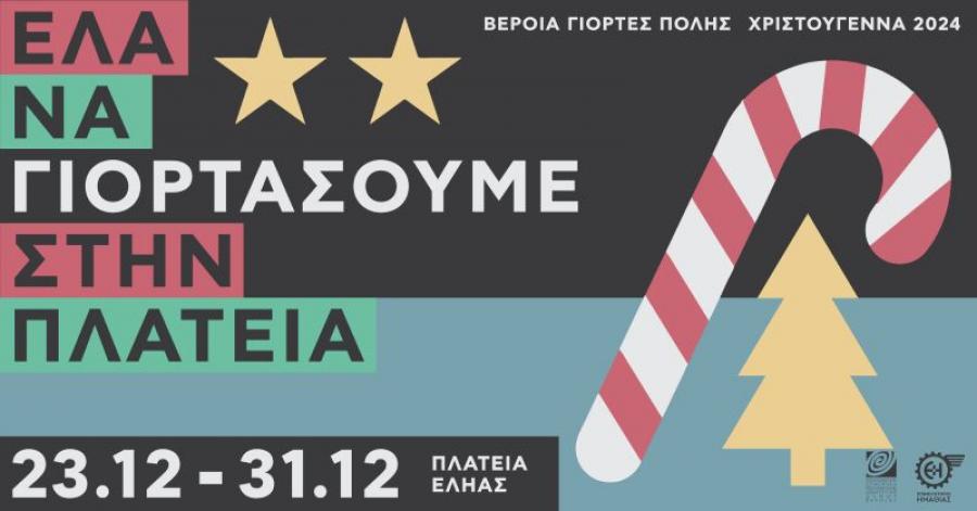 Ο Δήμος Βέροιας, το Επιμελητήριο Ημαθίας και η ΚΕΠΑ Δήμου Βέροιας, MΑΖΙ, ενώνουν τις δυνάμεις τους και συναντιούνται τα Χριστούγεννα στην Πλατεία της Εληάς, παρέα με μικρούς και μεγάλους, με ένα πλούσιο γιορτινό πρόγραμμα γεμάτο τραγούδι, χορό, θέατρο, εργαστήρια και γλυκές εκπλήξεις!