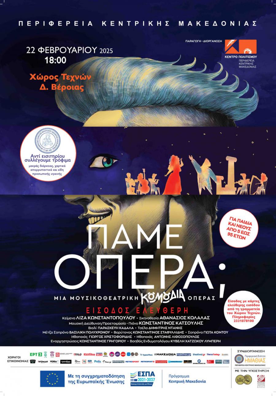 Μετά από την περσινή (2024) μεγάλη επιτυχία και ανταπόκριση μικρών και μεγάλων θεατών, η εκπαιδευτική παράσταση «ΠΑΜΕ ΟΠΕΡΑ;» του Κέντρου Πολιτισμού Περιφέρειας Κεντρικής Μακεδονίας, συνεχίζει την πορεία της και παρουσιάζεται τον Φεβρουάριο σε πέντε θέατρα Δήμων της Κεντρικής Μακεδονίας.