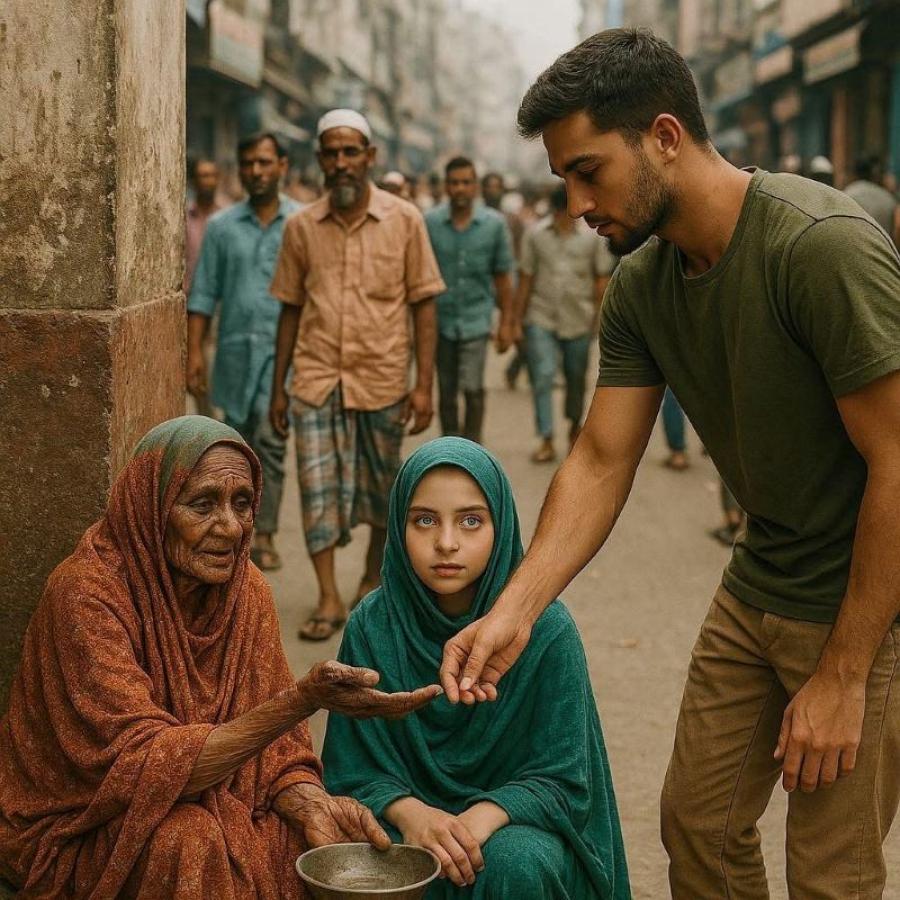 Με κοίταξε έκπληκτος και μετά άδειασε τις τσέπες του βάζοντας όλα του τα χρήματα στα χέρια της έκπληκτης γριάς.