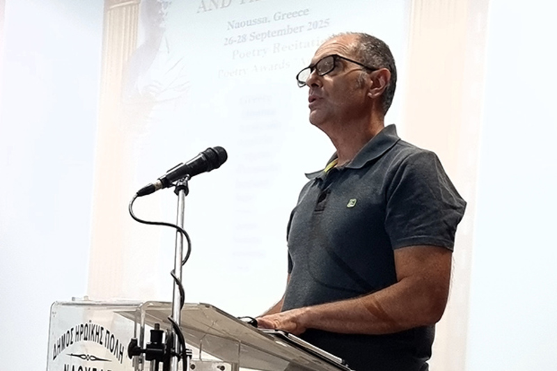 Παίρνοντας τον λόγο ο ποιητής αναφέρθηκε στις δημιουργικές του προθέσεις και στους συναισθηματικούς του δεσμούς με την Ελλάδα και τη Νάουσα, όπου γεννήθηκε η ποιητική του συλλογή, ενώ στάθηκε στη διαπίστωση ότι ο ποιητής επεξεργάζεται το υλικό του, εκφράζεται και ζει σε επίπεδο μεταφορικότητας και συμβολισμού. Τέλος, με πολλή εκφραστικότητα απήγγειλε ένα ποίημα της συλλογής του.