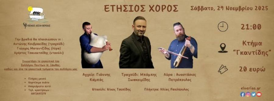 Πλησιάζει η ημέρα που θα ξαναβρεθούμε όλοι μαζί στον ετήσιο χορό των τμημάτων της Λέσχης μας, το Σάββατο 29 Νοεμβρίου 2025, στο κέντρο «Κτήμα Γκαντίδης», στο δρόμο προς Άγιο Γεώργιο Βεροίας.