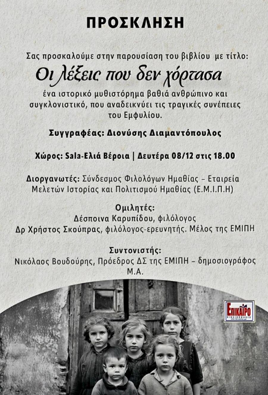 "Οι λέξεις που δεν χόρτασα" του Διονύση Διαμαντόπουλου παρουσιάζονται στη Βέροια