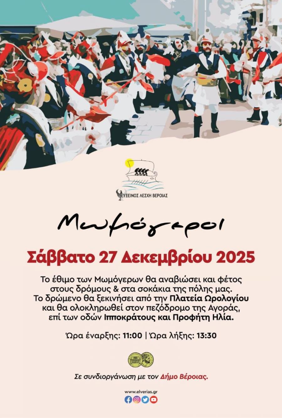 Η Εύξεινος Λέσχη Βέροιας σε συν - διοργάνωση με το Δήμο Βέροιας, θα αναβιώσει για δέκατη χρονιά το πανάρχαιο έθιμο των Μωμό ’ερων στην πόλη της Βέροιας.