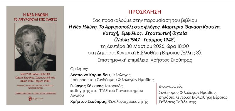 Παρουσίαση του βιβλίου "Η Νέα Ηλώνη: Το Αργυροπούλι στις φλόγες"